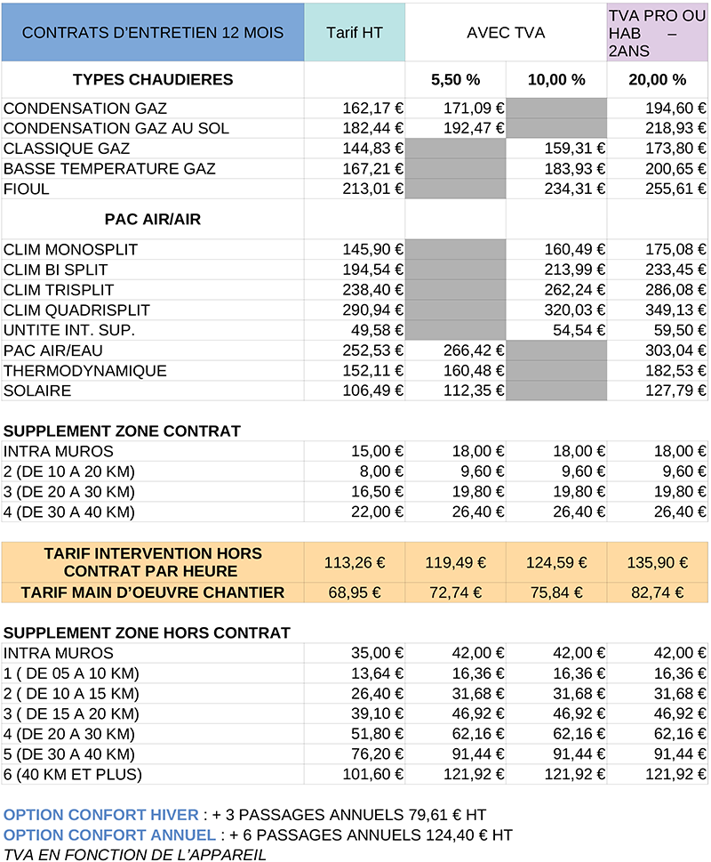 Voici notre grille tarifaire (cliquez pour zoomer).